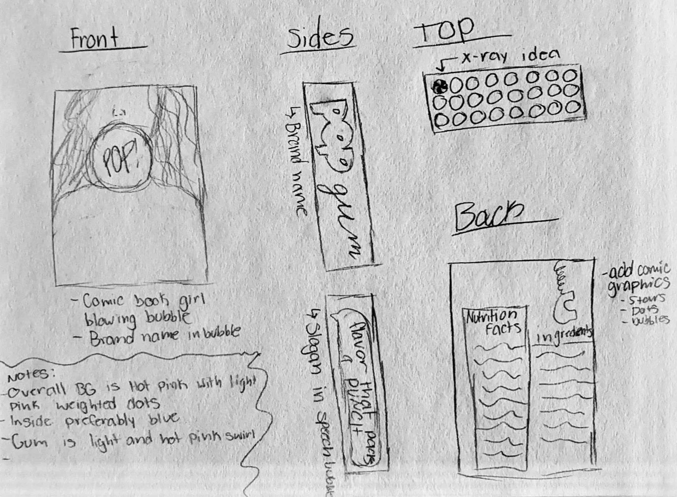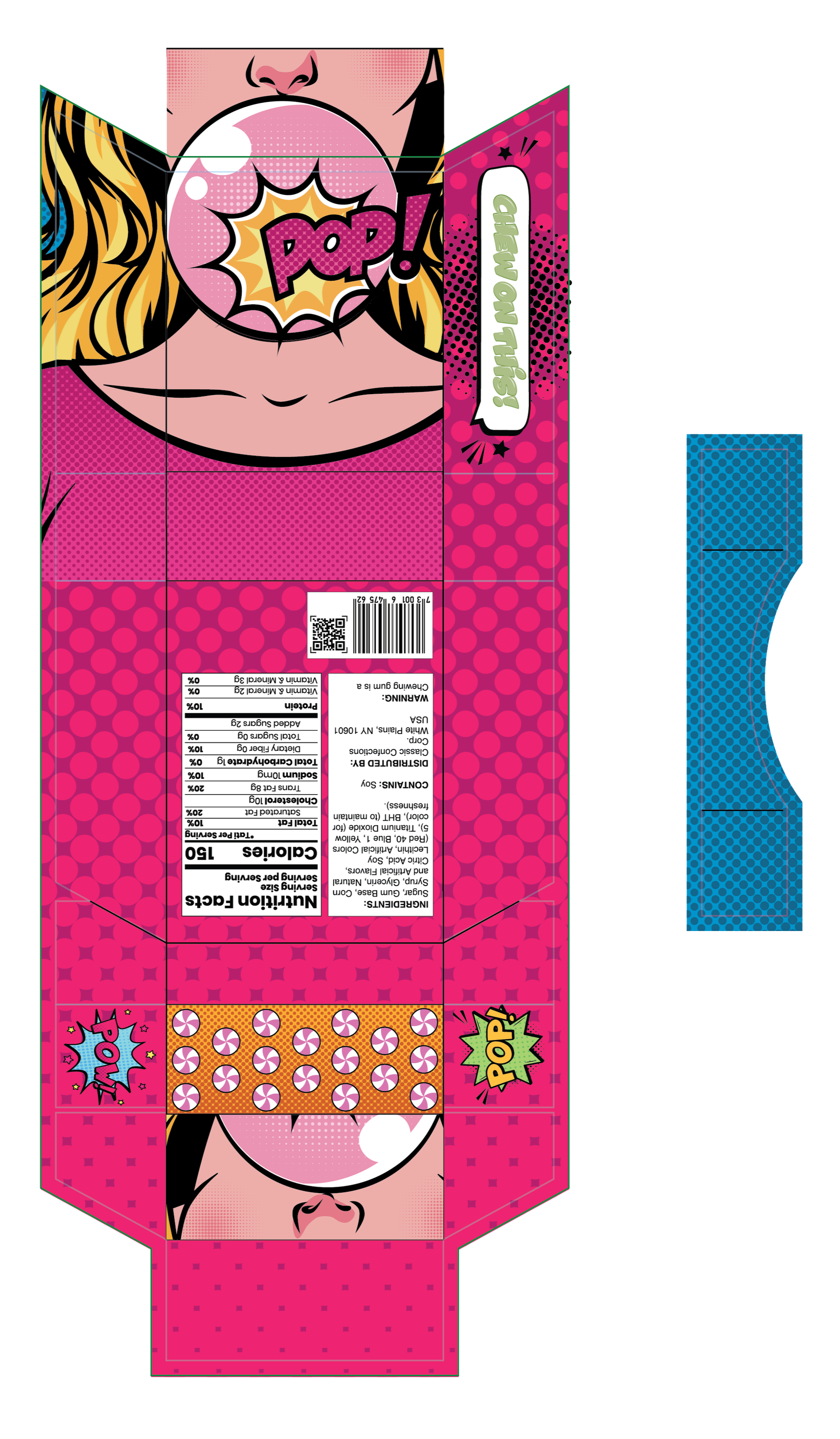 I designed a packaging concept for a bubble gum brand inspired by comic pop art. Blending bold colors and hand drawn design allowed for a vintage and youthful design.